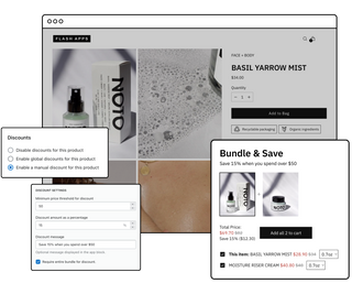 Enhance your customers' shopping journey by offering discounts when purchasing complementary products together or individually. Flash Bundle allows you to create custom discount rules per product bundle.